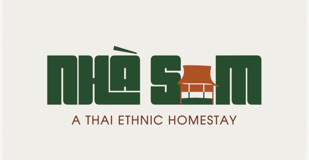 Ngôi nhà sàn: Được lồng ghép khéo léo vào chữ "A" trong từ "SAM", hình ảnh nhà sàn là trái tim và linh hồn của homestay, đại diện cho sự che chở, ấm áp và một không gian văn hóa nguyên bản.